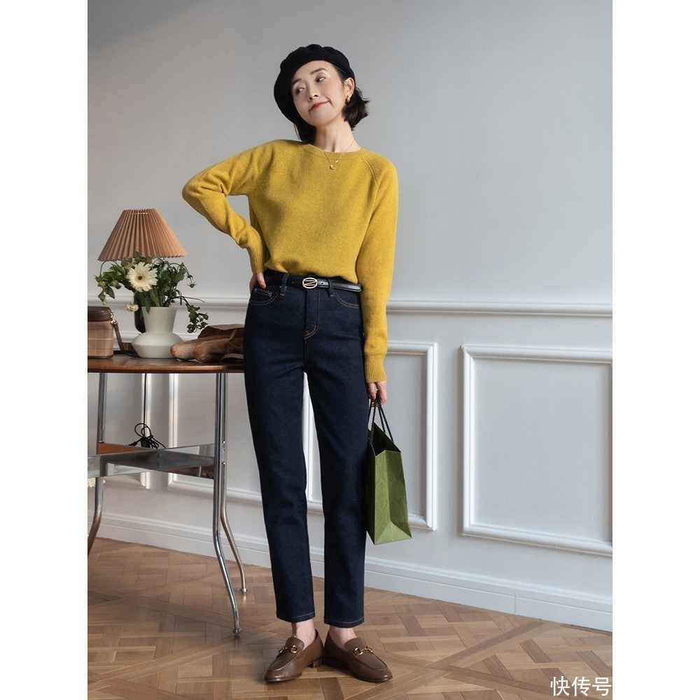 经典的“牛仔裤+毛衣”,可以使得造型显得很渺小,濒临秋冬千里闷的穿搭时,遴选有色的毛衣单品来和牛仔裤配,照着穿又暖又很好意思。